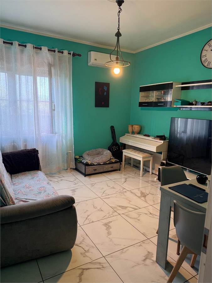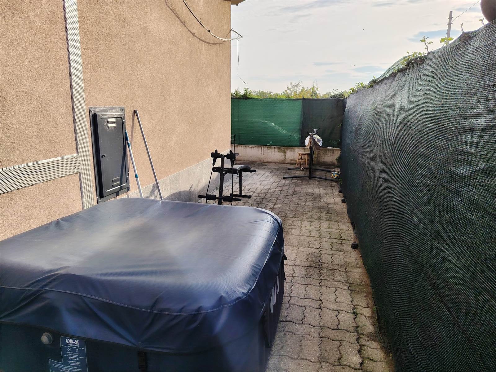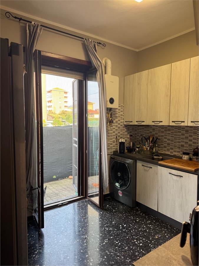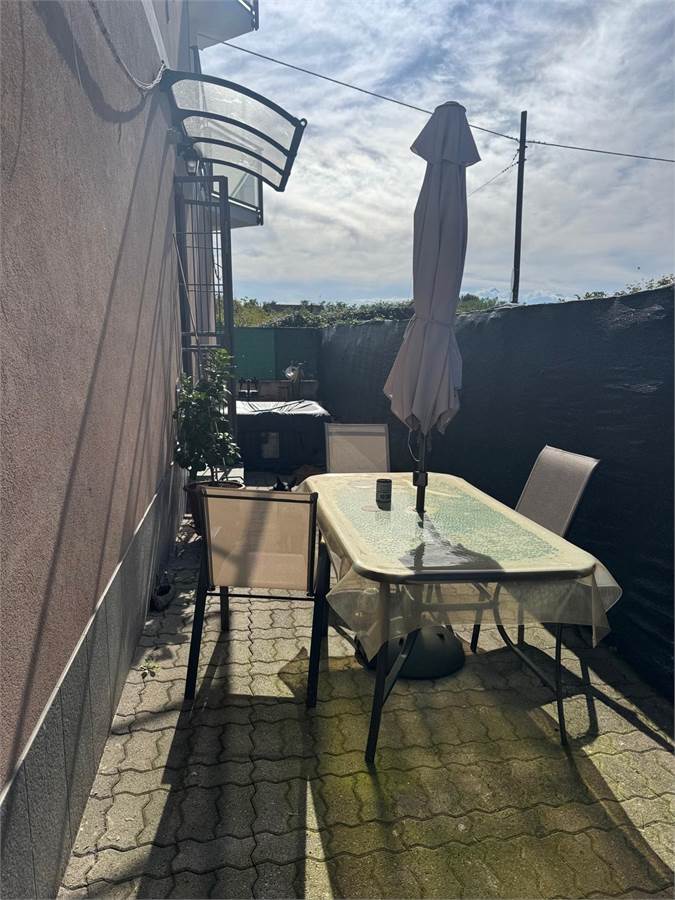 L'accesso all'appartamento avviene mediante porta blindata coibentata e anche le porte interne sono state sostituite; lo stesso vale per i portoncini condominiali. Vi è un cucinotto che tramite la porta finestra conduce all'area esterna privata, godibile nelle varie stagioni essendo pavimentata, punto di forza di questa proposta. Le due camere sono ampie, finestrate e con pavimenti chiari. Il bagno, anch'esso finestrato, è completo di vasca. C'è anche un pratico ripostiglio.