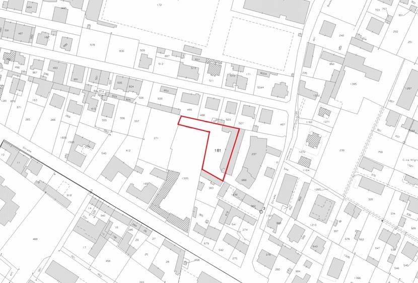 Lotto con densità fondiaria di 2 mc/mq per un totale di 2535 mc e 845 mq di SLP con altezza massima di 14 mt (4 piani f.t. + mansarda) per rilascio di Concessione singola.